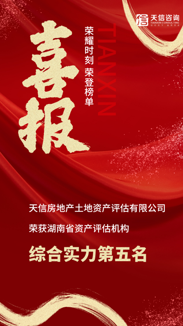 熱烈祝賀天信房地產(chǎn)土地資產(chǎn)評估有限公司躋身湖南省資產(chǎn)評估機(jī)構(gòu)綜合實(shí)力前五!