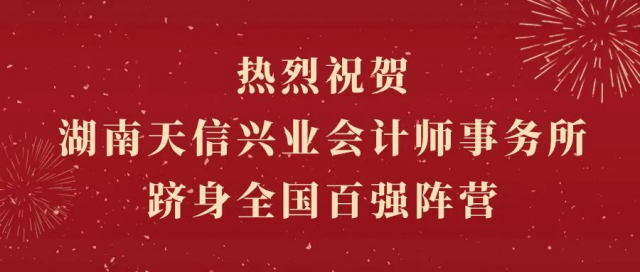 熱烈祝賀湖南天信興業(yè)會(huì)計(jì)師事務(wù)所躋身全國(guó)百?gòu)?qiáng)陣營(yíng)!