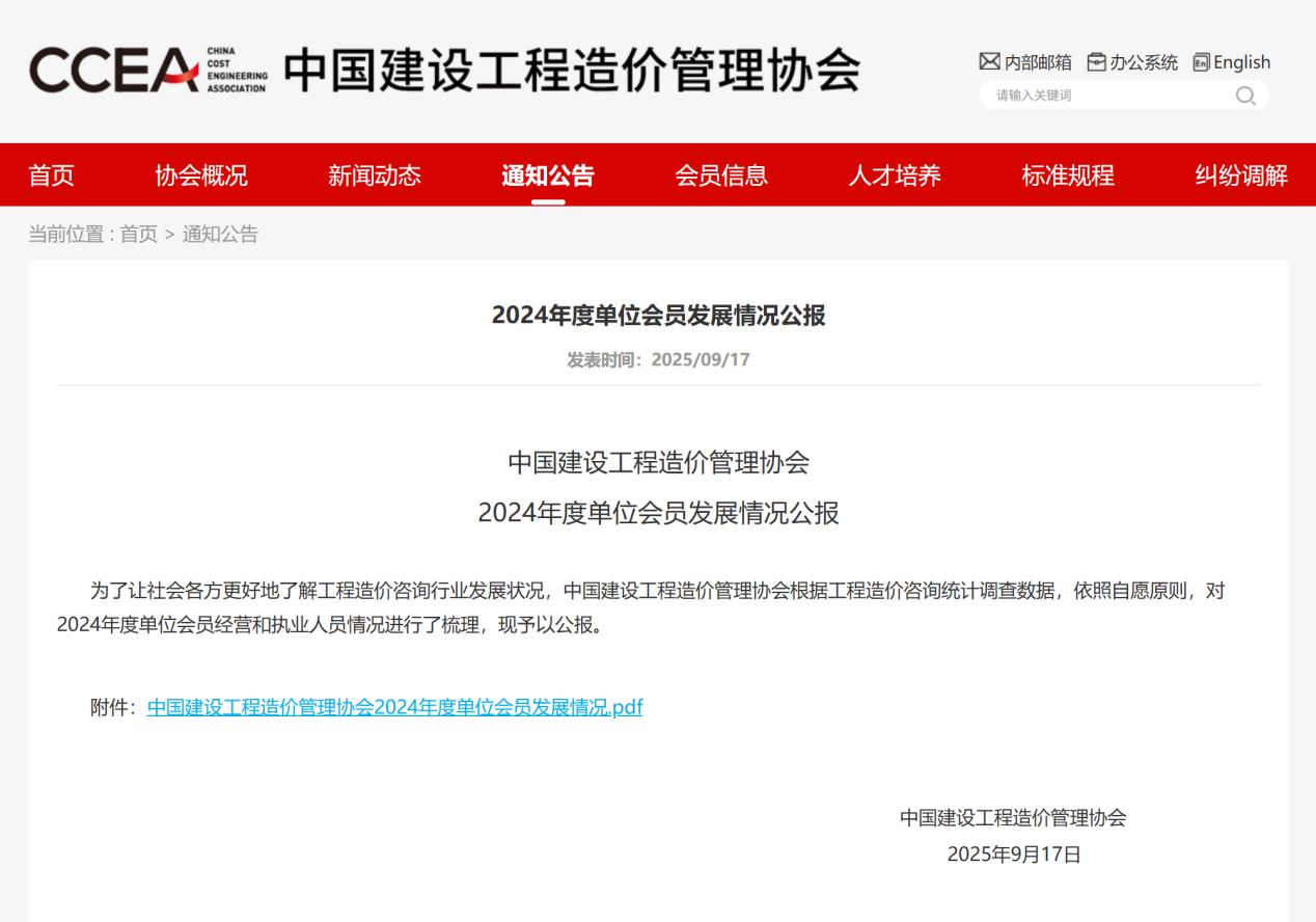 近日,中國建設(shè)工程造價(jià)管理協(xié)會發(fā)布《2024年度單位會員發(fā)展情況公報(bào)》,天信工程項(xiàng)目管理有限公司位列湖南省工程造價(jià)咨詢企業(yè)第十名,再次印證了公司在行業(yè)的核心競爭力與市場地位。