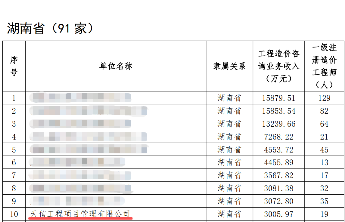 湖南省工程造價(jià)咨詢企業(yè)十強(qiáng)!